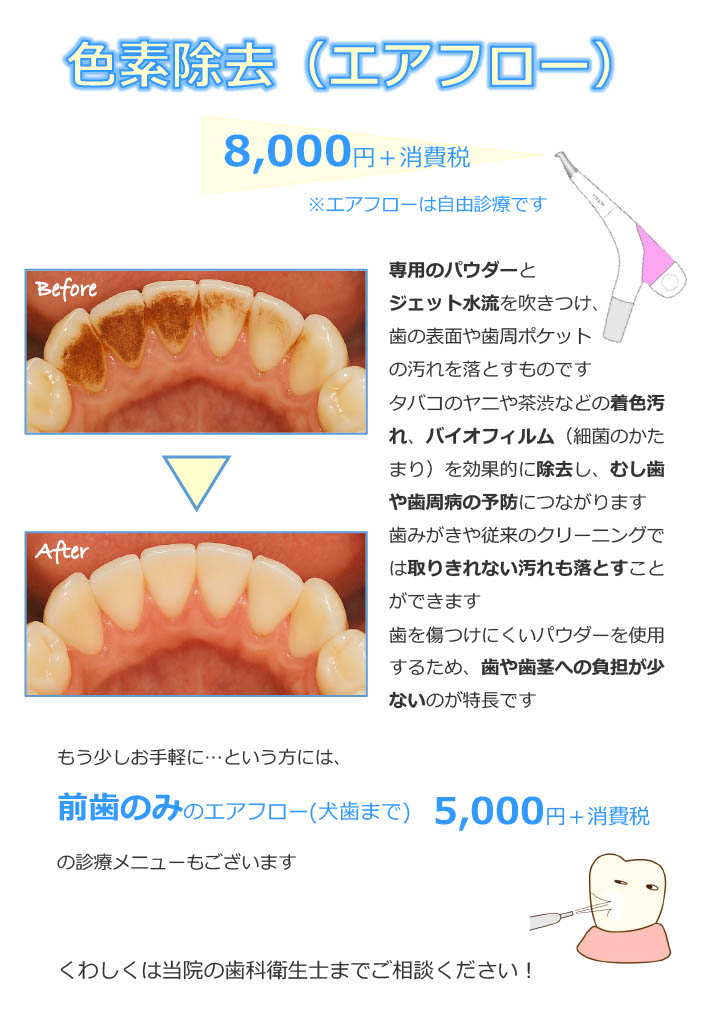 色素除去で本来の歯の色にされてみてはいかがでしょうか?