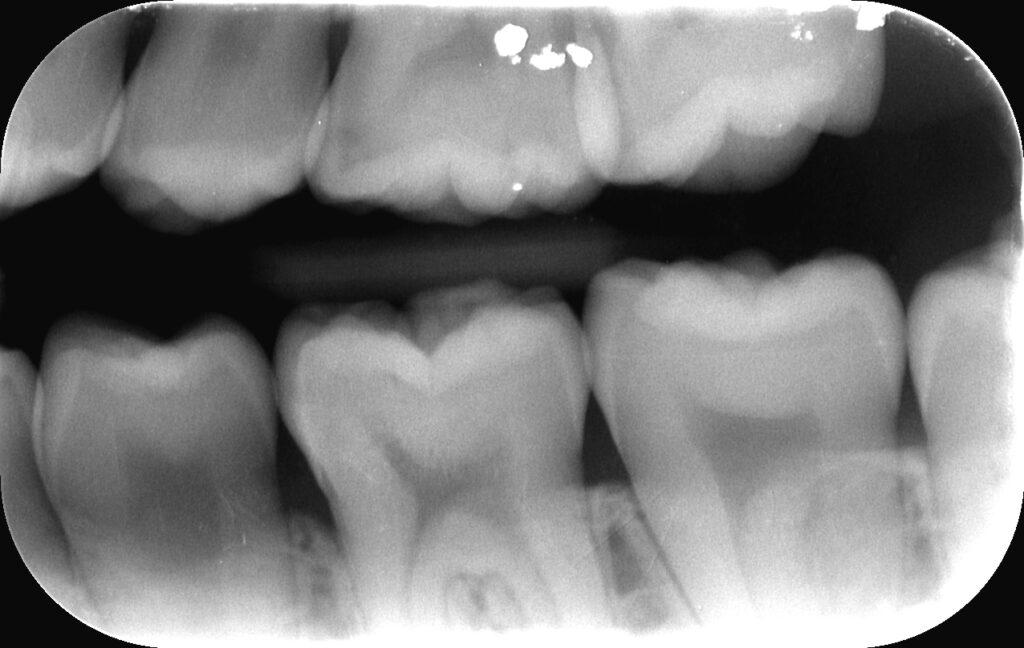 歯と歯の間のむし歯(隣接面う蝕):初期は見た目で気づきにくく、バイトウイングという撮影法が最も感度よく発見できます。